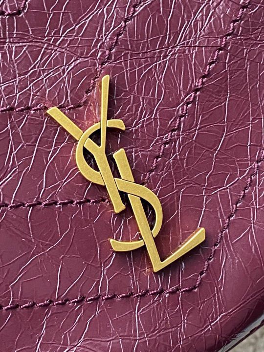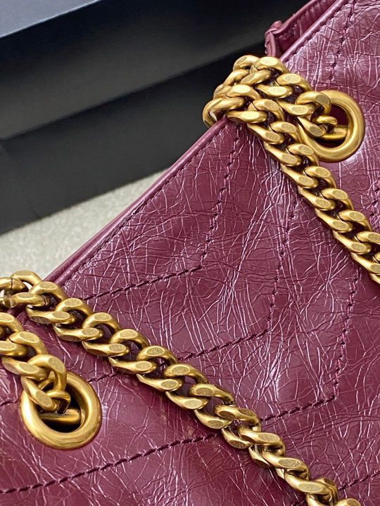 - Oil wax date red/gold Yves Laurent Niki small shopping bag, black gold color matching super texture! Made of oil-wax cowhide, the surface is naturally wrinkled, and the hand feels soft, waxy and durable. Metal chain shoulder straps +YSL logo, retro and fashionable, light and just the right capacity, and it's OK to commute and get off the street! Internal magnetic snap buttons + zipper pockets make it super convenient to store. It can be switched between the shoulders and back with your hands. It is practical and versatile. It is a popular model in the Niki series.