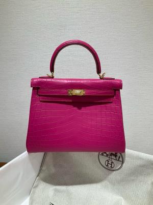 Hermes Kelly 25 matte Niloticus Crocodile J5 Rose scheherazade GHW