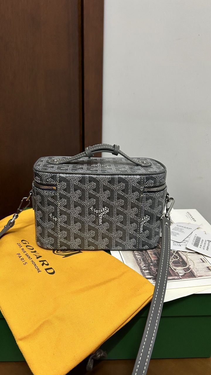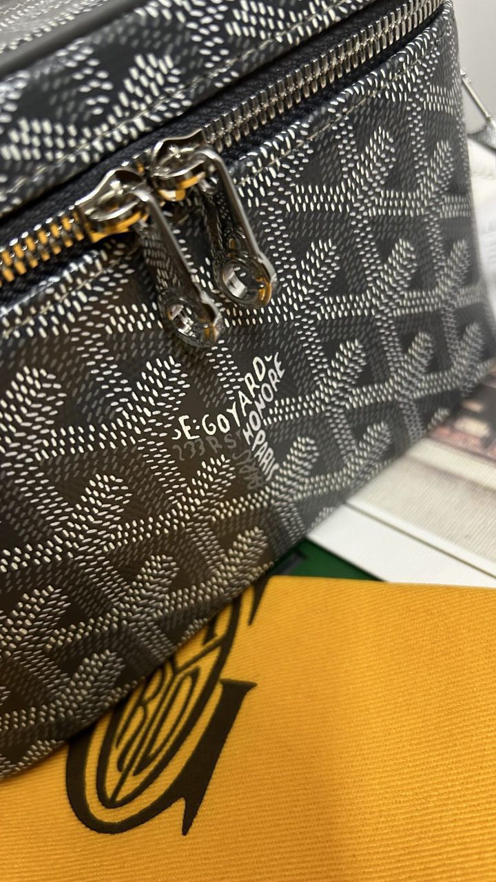 • The GOYARD MUSE Mini Cosmetic Bag continues the design elements of the MUSE Small Cosmetic Bag and is presented in a mini version. It is elegant and practical, and safely stores daily necessities. The MUSE mini bag is equipped with removable leather shoulder straps that can be carried, shoulder-backed or cross-slung.
