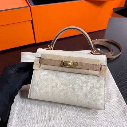 Mini Kelly ll 19cm epsom 10 Craie + 0M Chai GHW
