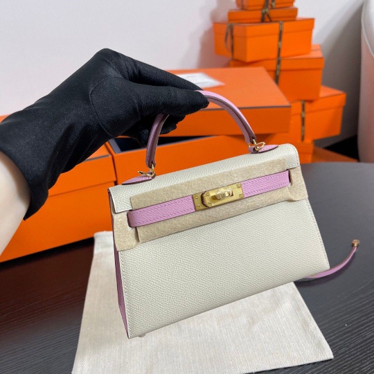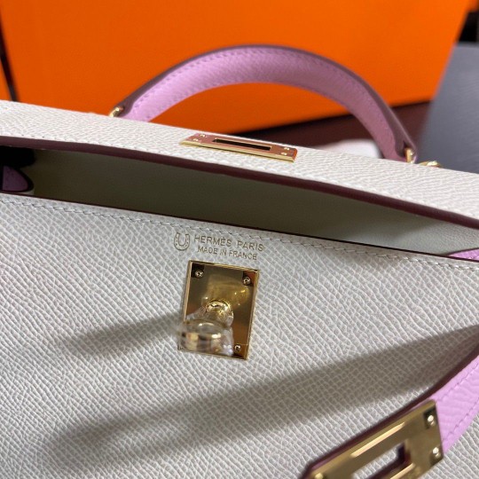 Mini Kelly ll 19cm epsom 10 Craie + X9 Mauve Sylvestre ghw