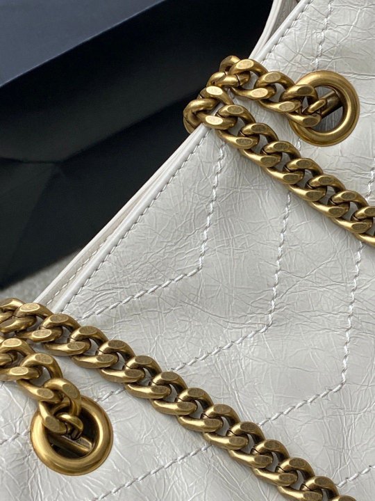 - Oil wax milk white/gold Yves Laurent Niki small shopping bag, black gold color matching super texture! Made of oil-wax cowhide, the surface is naturally wrinkled, and the hand feels soft, waxy and durable. Metal chain shoulder straps +YSL logo, retro and fashionable, light and just the right capacity, and it's OK to commute and get off the street! Internal magnetic snap buttons + zipper pockets make it super convenient to store. It can be switched between the shoulders and back with your hands. It is practical and versatile. It is a popular model in the Niki series!